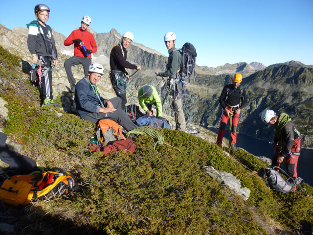 Dès cette rentrée, le CAF de Tarbes forme ainsi ses adhérents à pratiquer la montagne technique avec plus de sécurité. Le premier thème proposé fut terrain varié le week-end dernier et a connu un franc succès avec une météo estivale et huit participants motivés dont trois mineurs de l’école d’aventure. Les premiers ateliers techniques se sont déroulés au rocher école de Sarrancolin avant de monter en altitude l’après-midi en altitude au lac de Cap de Long : point sur le matériel, assurance, encordement, nœuds, protection, relais, sécurité dans la progression, rappel … ont été révisés.
