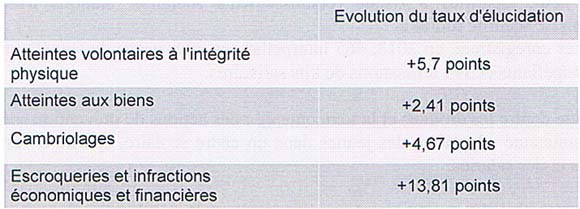 4) la forte mobilisation des forces de gendarmerie et de police qui s’exprime notamment par la hausse du taux d’élucidation.