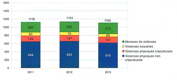 - Les violences sexuelles (69 contre 79 en 2012) et les violences physiques non crapuleuses (615 contre 653 en 2012) baissent.