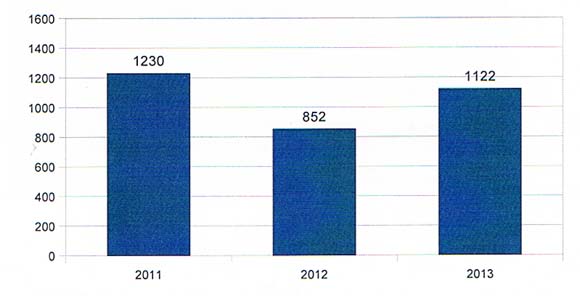 1) Les violences aux personnes sont en baisse : - 2,39% en 2013 (1104 faits constatés en 2013 contre 1131 en 2012)