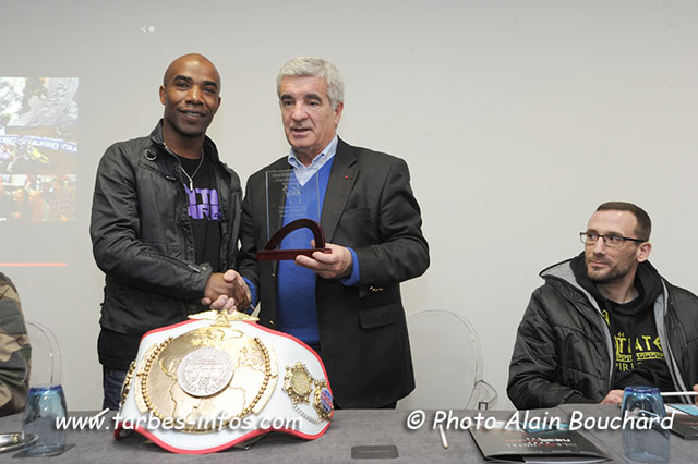 Jeudi, le Maire de Tarbes a remis un trophée à Hirachidine Saindou, combattant auxiliaire sanitaire au 35ème Régiment d’Artillerie Parachutiste de Tarbes. Le samedi 22 février, il a remporté, après 3 rounds, le championnat du monde de kick-boxing à Pau en venant à bout du Croate Marinko Maticic, dans la catégorie des moins de 67 kg.