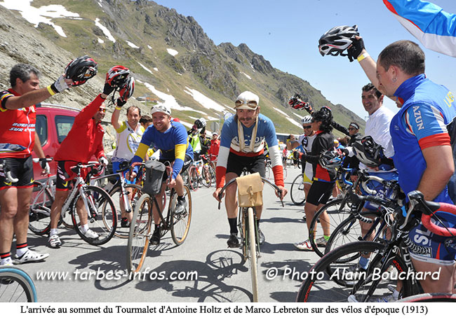 Cette année, la parrain de cette journée qui bénéficia d’un temps exceptionnellement beau et chaud était Gérard Holtz, figure de la télévision et du Tour de France dont on connaît la passion pour le vélo. Il a d’ailleurs consacré un documentaire-fiction intitulé « Le Vieux Gaulois et sa Petite Reine », dont la diffusion est prévue le lundi 7 juillet à 17h50 sur France 2. C’est Antoine Holtz, le fils de Gérard, qui incarnera le personnage de ce coureur devenu un véritable héros par son courage et sa force de caractère. Antoine était là au départ et avec le vélo d’époque a gravi au côté du Tarbais Marco Lebreton le légendaire col pyrénéen.