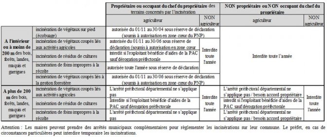 • En cas de conditions particulières : sécheresse, déclenchement du seuil d’alerte vis-à-vis de la pollution de l’aire, conditions défavorables autres, le Préfet peut interdire toute incinération.