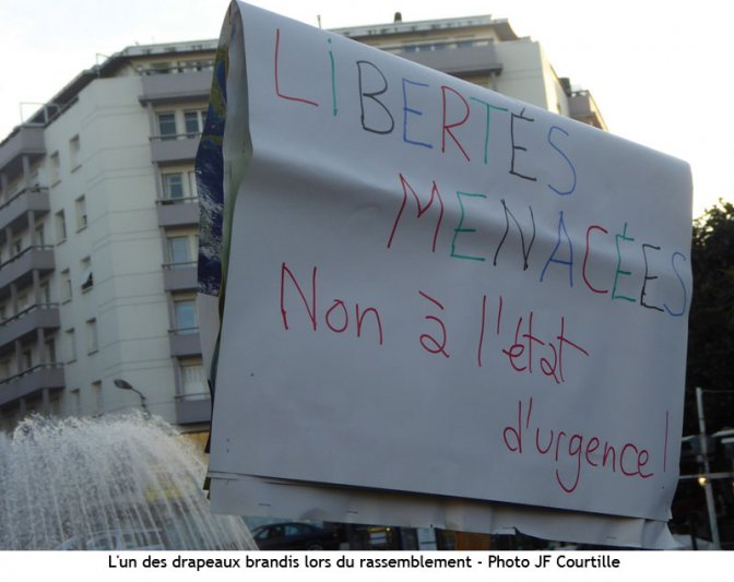 A la fin du rassemblement, les membres du Collectif « Nous ne cèderons pas » lisent à haute voix le tract diffusé aux personnes de passage sur la place Verdun ce vendredi après-midi. « Nous affirmons qu’il est nécessaire et possible que l’Etat protège les habitants face au terrorisme, sans remettre en cause les droits et les libertés. Nous refusons une société du contrôle généralisé. Notre pays a été blessé, mais loin d’en soigner les plaies, l’état d’urgence risque de les exacerber, en appauvrissant notre démocratie, en délégitimant notre liberté ». Ils concluent en demandant « la levée de l’état d’urgence et l’abandon de cette réforme constitutionnelle ». Et ils lancent un appel aux habitants de notre pays « à développer la citoyenneté et à agir pour construire une société solidaire ».