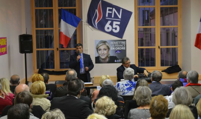Olivier MONTEIL a souligné en introduction combien la campagne de terrain engagée par le FN 65 rencontrait d’ores et déjà un excellent accueil, notamment sur les marchés du département où les militants frontistes tractent désormais régulièrement (Tarbes, Lourdes, Argelès-Gazost, Trie sur Baïse, Bagnères de Bigorre, Lannemezan, Vic en Bigorre, etc.). Intervenant dans le cadre de la tournée "Marine 2017", Michel GUINIOT a ensuite développé les perspectives de plus en plus sérieuses de victoire de MARINE à l’élection présidentielle, où tout concoure désormais à la placer en position non seulement d’être en tête du premier tour, mais également de remporter le second : les crises que rencontre le pays et le refus de plus en plus fort des peuples occidentaux à l’égard de leurs élites politiques sont tels "l’alignement des planètes n’a jamais été aussi favorable qu’aujourd’hui".