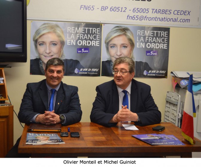 Accueilli par Olivier MONTEIL, secrétaire départemental FN des Hautes-Pyrénées, Michel GUINIOT, membre du Bureau Politique du FN, délégué national aux élus et à la formation, président du groupe FN au Conseil départemental de l’Oise et conseiller régional du Nord-Pas de Calais-Picardie, a d’abord tenu une conférence de presse à la permanence tarbaise du FN 65, ce samedi 18 février 2017.