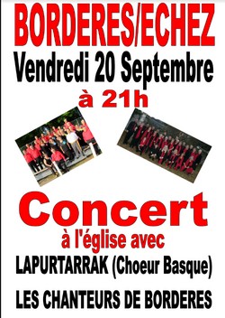 Accueil > AGENDA DES SORTIES > Concerts > La Chorale LAPURTARRAK en concert à Bordères LE 20 septembre 2019