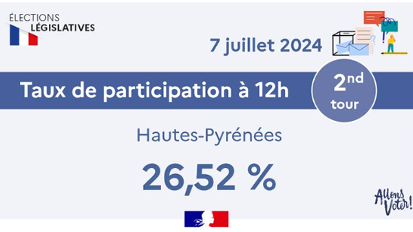 Election législatives 2024 2 ème tour / Taux de participation à 12 heures dans les Hautes-Pyrénées