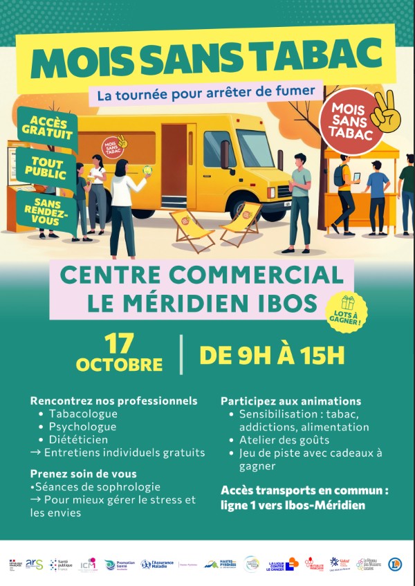 Ce vendredi 17 octobre 2025, de 9h à 15h, le Centre Commercial Le Méridien Leclerc à Ibos accueillera une initiative de santé publique aussi bienveillante que nécessaire : le Village Mois Sans Tabac.
