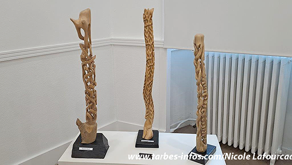 L’exposition présentée à l’Office de Tourisme permet de découvrir un univers où chaque pièce raconte une histoire : celle d’un homme qui dialogue avec la nature, qui sculpte pour mieux respirer, et qui transforme le buis en une matière vivante, presque vibrante.