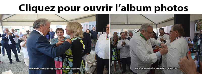 Très belle cérémonie de remise de la médaille du Mérite agricole à Béatrice Lagarde, ancienne préfète des H-P et à Jean-Pierre Saint-Martin, le réputé maître-cuisinier du Viscos à Saint-Savin