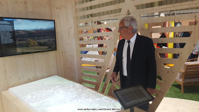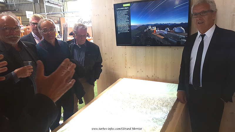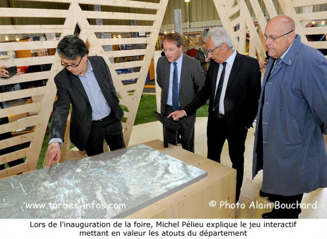 A l’issue du repas, les maires ont visité la foire et se sont longuement arrêtés devant le stand du conseil départemental où Michel Pélieu a fait découvrir un jeu interactif permettant de mettre en valeur tous les atouts des Hautes-Pyrénées, dans les secteurs les plus divers (patrimoine, grands sites, gastronomie, etc.).