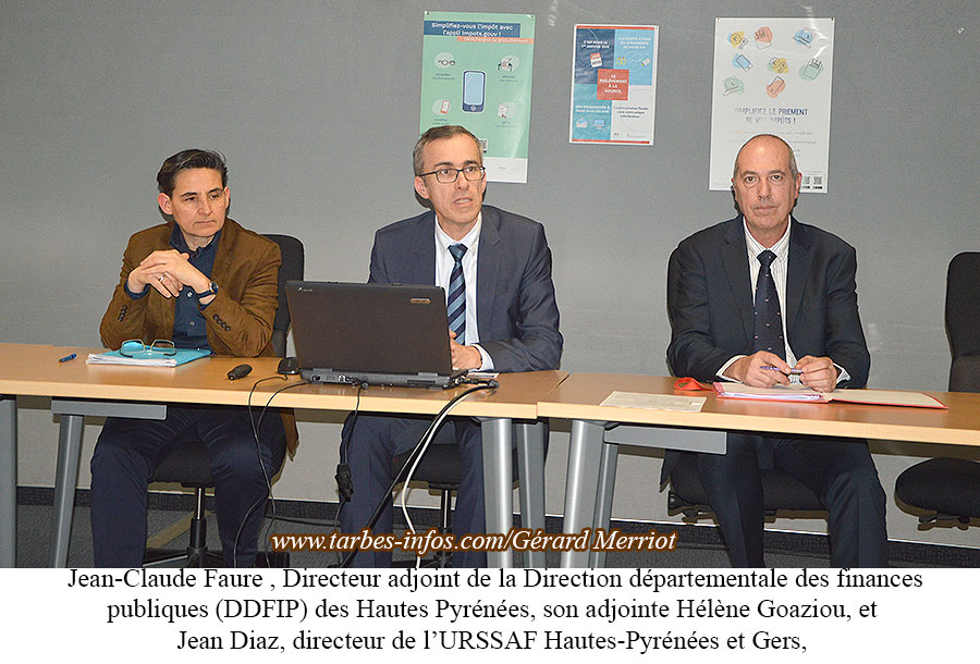 Ce jeudi après-midi 3 janvier 2019, Jean-Claude Faure , Directeur adjoint de la Direction départementale des finances publiques (DDFIP) des Hautes Pyrénées, son adjointe Hélène Goaziou, et Jean Diaz, directeur de l’URSSAF Hautes-Pyrénées et Gers, ont tenu une conférence de presse pour évoquer le prélèvement à la source qui vient d’intervenir au 1er janvier 2019.