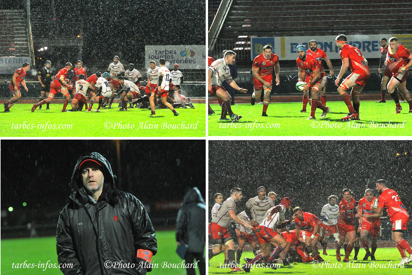 Les Tarbais ont la sensation du travail accompli, avec en prime un bonus offensif qui n’était pas programmé au départ contre une solide équipe de Lavaur, qui avait tous les atouts pour les inquiéter dans ces conditions difficiles. Mais cette fois les Tarbais ne se sont pas relâchés après leur succès bonifié à Oloron. Ils ont su faire preuve d’humilité et ont respecté, une fois de plus à la lettre, les consignes de jeu distillées toute la semaine. Quatre des cinq essais sont venus de ce jeu de pression au pied et d’avancée. Ceux de D’Hooghe et le premier de Nuu, proviennent de deux superbes passes au pied de Pees. Deux autres sont issus d’une grosse pression défensive. Avec un ballon récupéré derrière la mêlée de Lavaur sur le second essai de Nuu et celui de Dumestre, part d’une mêlée concédée par Lavaur sous la pression défensive. Jouer à la main dans ces conditions, c’était impossible et Lavaur l’a appris à ses dépends en première mi-temps. Au-delà du respect d’un plan de jeu rigoureux adapté aux circonstances, c’est encore la grosse défense sur la ligne qui s’est mise en exergue. A l’ouverture, William Pees a réussi, sans doute, sa meilleure prestation depuis qu’il occupe le poste. Doté d’un coup de botte puissant, le Béarnais d’origine, à su mettre une main au bout de ses crampons pour distiller des petits coups de pieds variés et précis, qui ont débouché sur les essais de D’Hooghe et de Nuu. La puissance de sa botte a amené de belles sorties de camp et un très bon jeu d’occupation. On lui doit aussi une pénalité de Berbizier sur une belle chandelle. Dans ces conditions, où il était impossible de jouer à la main, son jeu au pied a fait la différence. Quand les Tarbais se sont permis d’envoyer du jeu, ils sont mis en danger sur des contres.