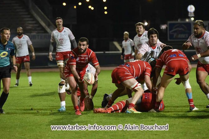 Tarbes, pour ce dernier match du deuxième Bloc, aligne en majorité le Groupe victorieux de Cognac, à l’exception de Méron qui a été blessé lors de ce match et de Maximin, touché l’entraînement. Ils sont remplacés, poste pour poste, par le jeune Agueb, très en vue à Nice et par l’expérimenté Sajous. Changement aussi, poste pour poste, avec le retour de Millet en remplacement de Dulucq sur le banc. Le staff a effectué deux changements dans le XV de départ avec Oltmann qui permute sur le banc avec Paulet et la rentrée de Saint-Guilhem à la place de Maximin.