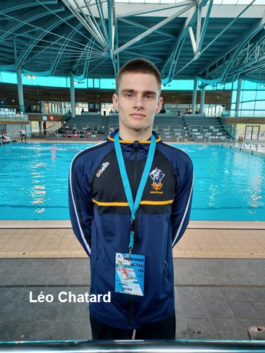 Au même moment, Léo CHATARD se déplaçait aux Championnats de France de la Défense à Lyon. Grosse confrontation avec des anciens nageurs de haut niveau. Léo avait préparé ce championnat avec sérieux ces dernières semaines et se présentait avec détermination. Les premières épreuves confortaient la préparation de Léo avec l’épreuve la plus difficile du 400 NL où il décroche une 4ème place en 4’26’’53. Il enchaîne ensuite les superbes chronos et les bonnes places (27’’44 au 50 papillon, 26’’15 au 50 NL, 55’’92 au 100 NL) et obtient 2 podiums avec un titre de vice champion de France sur le 200 4 Nages en 2’20’’08 et une 3ème place au 100 Papillon en 1’01’’13. Léo est très fier de ses résultats et remercie ceux qui l’ont aidé (ses parents), mais aussi le club du Tarbes Nautic Club qui l’entraîne depuis de nombreuses années.