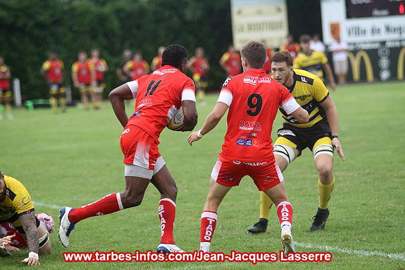 Le public, dont de nombreux supporters tarbais en rouge, s’est régalé ce jeudi à Nogaro malgré les vrombissements venus du Circuit Automobile qui jouxte le Stade. Le bus d’Albi étant tombé en panne le match a commencé avec trois-quarts d’heure de retard. Un match ouvert, malgré des déchets, avec beaucoup d’intentions de jeu et des défenses agressives de part et d’autre. Tout d’abord, il faut souligner que les deux équipes étaient incomplètes et ont fait tourner.