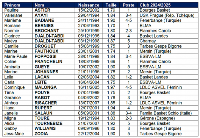 Accueil > SPORTS > Basket > Un groupe élargi pour les Bleues : 25 joueuses à l’assaut de l’EuroBasket 2025