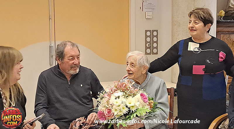 Pour marquer cet événement exceptionnel, la maire de Tarbes, Andrée Doubrère, s’est rendue sur place afin de lui remettre un bouquet de fleurs, geste symbolique de la reconnaissance et de l’affection de la ville envers une femme dont le parcours force le respect.