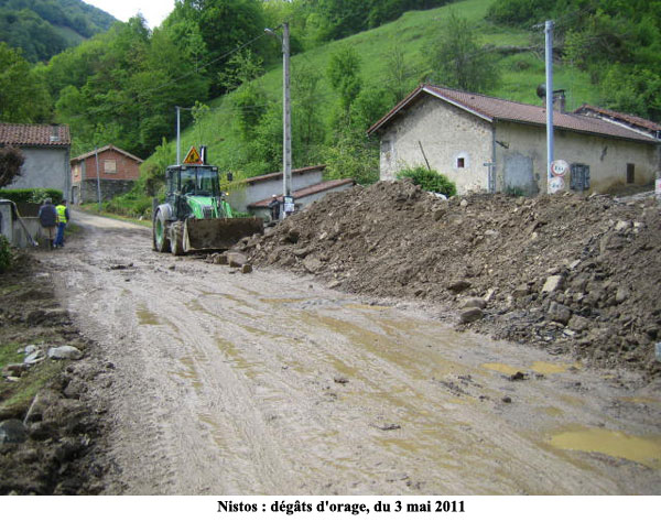 Lundi 2 mai, des pluies torrentielles se sont abattues sur la commune de Nistos, occasionnant notamment des dégâts importants à la voirie départementale et communale.