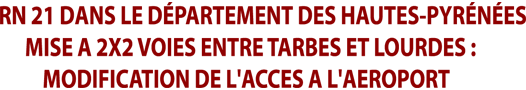 Accueil > ACTUALITE TARBES ET GRAND TARBES > Mise à 2x2 voies de la RN 21 entre Tarbes et Lourdes : communiqué de la (…)
