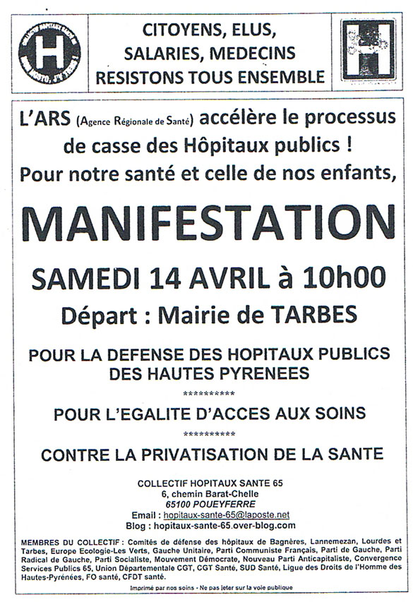 de défense des Hôpitaux, le Collectif Hôpitaux Santé 65 vous invite à les