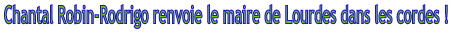 Visiblement, Chantal Robin-Rodrigo est remontée comme une pendule ! Sa cible : le maire-candidat de Lourdes qui met son drapeau UMP dans la poche, qui laisse entendre que Jeanine Dubié est étrangère à la 2e circonscription et qui a mis en cause son action en tant que parlementaire. A notre micro, Chantal Robin-Rodrigo a répliqué sèchement. Elle a renvoyé Artiganave dans les cordes. Il y a du KO dans l’air !
