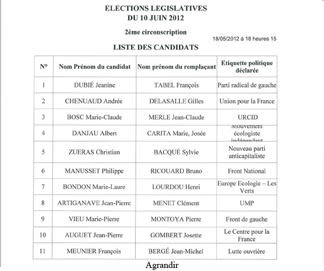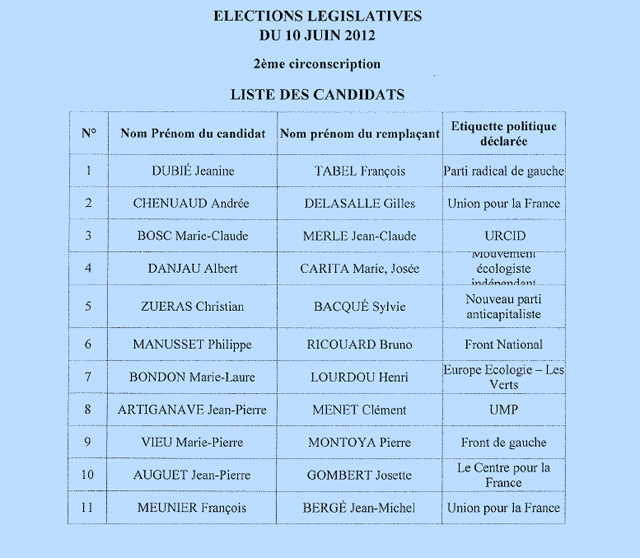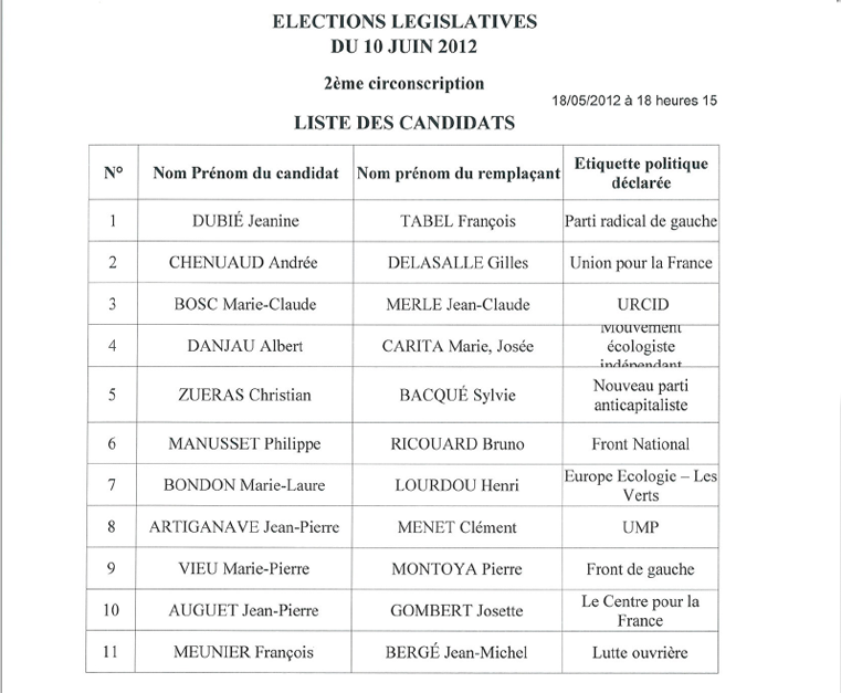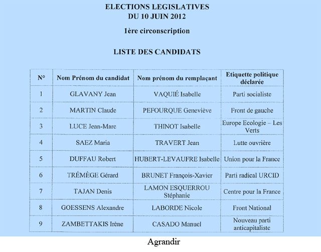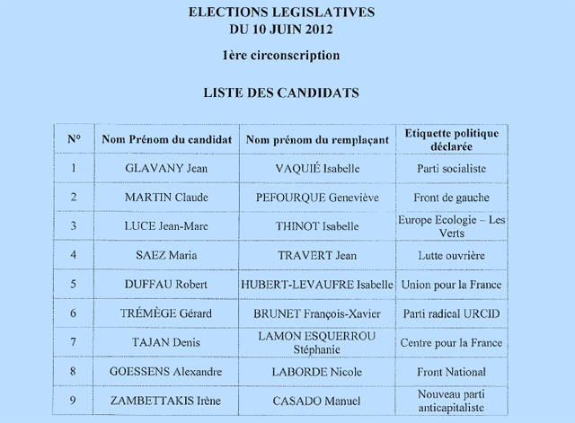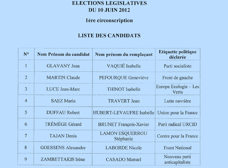Législatives 2012 : 9 candidats dans la 1e circonscription et 11 candidats dans la 2e circonscription