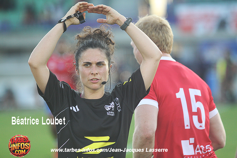 Pour un premier match en Nationale, on peut dire que c’est une réussite. Bérénice Loubet, l’arbitre du centre, a fait oublier que c’était une femme tant ses prises de décisions ont été claires, fermes et décidées. Dans un match difficile à arbitrer entre un leader et un bon dernier, le trio arbitral qui découvrait la Nationale, a fait une bonne prestation comparée à d’autres arbitrages à Trélut. Bérénice Loubet a arbitré en avantageant l’équipe qui faisait le jeu et non celle qui avait le meilleur classement. Un avis partagé par Didier Casadei le Manager de Périgueux : « Le plus vaillant a gagné. Le rugby ça reste un sport de valeurs, d’humilité, de volonté collective et Tarbes était au-dessus de nous. Leur victoire est méritée, bravo à eux. » L’ailier périgourdin Yon Camou est du même avis : « Tarbes était meilleur que nous, ils avaient plus d’envie, plus envie de gagner. Ils se sont plus bougés que nous et le score reflète le match. » Pour une fois, Tarbes n’a pas été arbitré comme une petite équipe mais comme une équipe comme une autre, récompensée ou punie quand elle le méritait. Personne, ni du côté des staffs, des joueurs ou des journalistes, n’a évoqué le sexe féminin de l’arbitre. Il est vrai qu’à part le carton rouge tarbais, qu’on peut juger sévère par rapport au carton jaune périgourdin, on ne peut pas lui reprocher grand-chose. Certes, deux ou trois gestes du côté de Périgueux auraient peut-être mérité plus qu’une simple pénalité mais la multiplication des fautes tarbaises en mêlée en fin de rencontre aurait pu aussi déboucher sur un carton jaune. Il est vrai que Bérénice Loubet, fille d’un rugbyman devenu entraîneur, a débuté dans le rugby à l’âge de 5 ans et a joué en Espoirs à Castres. C’est à la suite d’une blessure à l’épaule qu’elle s’est tournée vers l’arbitrage où elle poursuit sa passion du rugby. Une seconde place au Concours National des Jeunes Arbitres qui lui a ouvert les portes de la Fédérale 3 en 2020.
