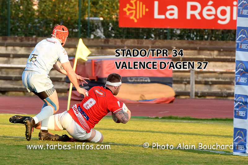 Fédérale 1 Poule 2 : Tarbes 34 Valence d’Agen 27 (MT 20-10)