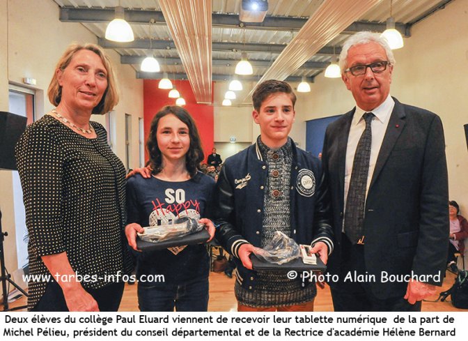 Hier jeudi, en fin d’après-midi, le principal du collège Paul Eluard a accueilli dans son établissement Michel Pélieu, président du Conseil Départemental, Hélène Bernard, Rectrice d’académie pour la remise des tablettes numériques aux élèves de 5éme. Etaient également présents Jean Glavany, député et vice-président du département en charge de l’éducation, le directeur académique Hervé Cosnard, des conseillers départementaux, des parents et les élèves.