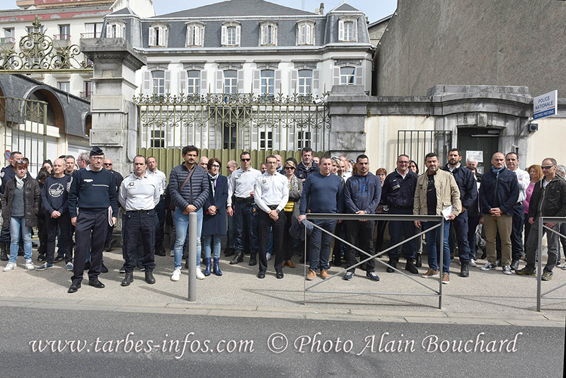 « Le plan de lutte contre les suicides dans la police doit devenir une cause nationale et être décrété priorité ministérielle », a réclamé l’intersyndicale de la police dans un communiqué. Elle a donc organisé des rassemblements des personnels de la police nationale ce vendredi matin 19 avril 2019, « devant leurs services respectifs en hommage » aux collègues décédés. Un rassemblement s’est donc tenu à l’appel des syndicats Alliance Police nationale et UNSA devant le commissariat central de Tarbes.