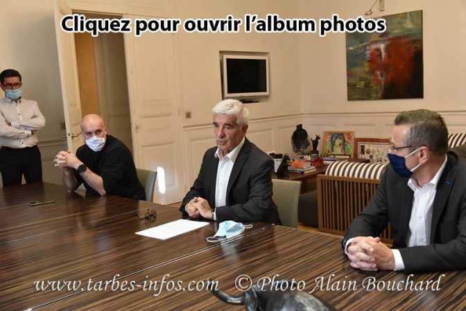 Ce lundi , Gérard Trémège maire de Tarbes entouré de son premier adjoint Pascal Claverie en charge du commerce et du président de Tellement Tarbes Vincent Brachet a tenu une conférence de presse pour évoquer la situation des commerces dits non prioritaires , donner sa position et sa décision.