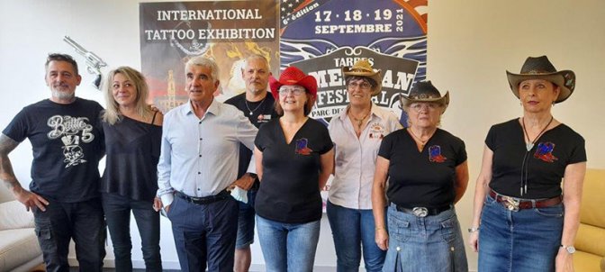 La 6 éme édition du festival American saloon se tiendra du 17 au 19 septembre au parc des expositions de Tarbes. Cette manifestation comportera pour la 2éme année 3 événements qui ont été présentés en présence du maire par les organisateurs Judith Stainby présidente de Passion Country 65, l’organisateur de tattoo exhibition et l’organisateur du poker Game.