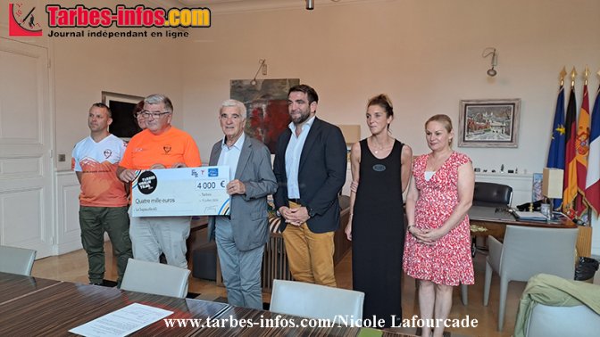 C’est entouré de Thomas Da Costa, adjoint aux sports, et de Catherine Lombard, directrice du service des sports, que Gérard Trémège, maire de Tarbes a remis un chèque de 4000€ à l’association SAPAUDIA.
