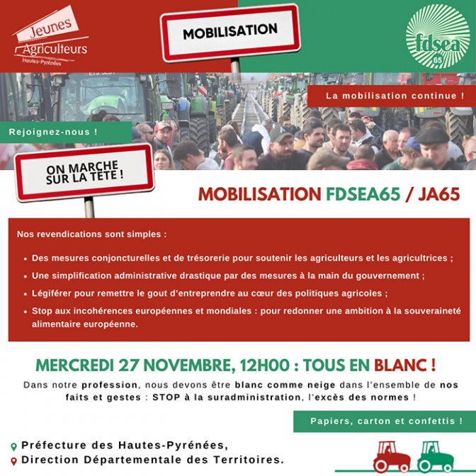 Accueil > COMMUNIQUÉS DE PRESSE > FDSEA 65 et JA 65 : Mobilisation pour une simplification administrative