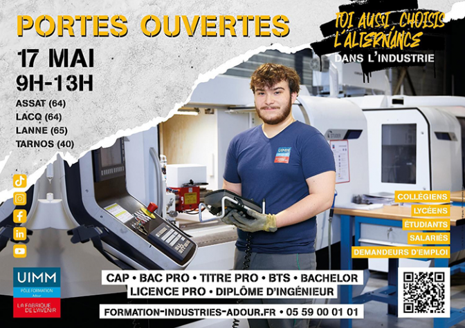 Le 17 mai 2025, le Pôle Formation Adour ouvrira ses portes de 9h à 13h dans plusieurs de ses sites, dont Assat, Lacq, Lanne et Tarnos. Cet événement est une occasion unique pour les candidats intéressés par des carrières dans l’industrie de découvrir un large éventail de formations allant du CAP au Diplôme d’ingénieur, incluant des cursus tels que le Bac Pro, BTS, et des certifications professionnelles.