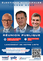Lors de l’événement, seront dévoilés la tête de liste, les principaux colistiers, ainsi que les grandes orientations du programme : sécurité, santé, attractivité économique, sport et valorisation du territoire. Le meeting est ouvert à tous, sur inscription, et se veut le point de départ d’une dynamique nouvelle pour Tarbes, sous le slogan : « Tarbes, le temps du changement ».