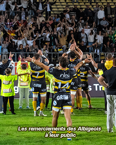 Pour Albi : Cinq essais Frambourg (31ème), Van Dyk (40+8), Calmon (45ème), de Pénalité (57ème), Courties (79ème), trois transformations Queheille (31ème, 40+8, 45ème), Vidal (79ème)