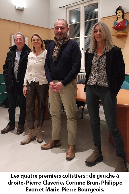 En présence de ses soutiens, Philippe Evon a présenté trois premiers colistiers : Corinne Brun (n° 2, actuellement élue), Pierre Claverie (n° 3, actuellement élu) et Marie-Pierre Bourgeois (n° 4).