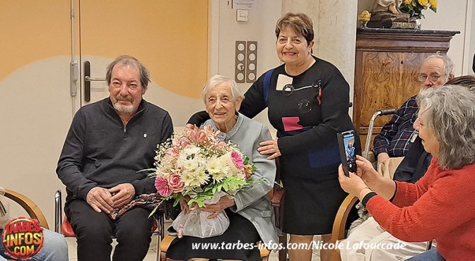 Pour marquer cet événement exceptionnel, la maire de Tarbes, Andrée Doubrère, s’est rendue sur place afin de lui remettre un bouquet de fleurs, geste symbolique de la reconnaissance et de l’affection de la ville envers une femme dont le parcours force le respect.