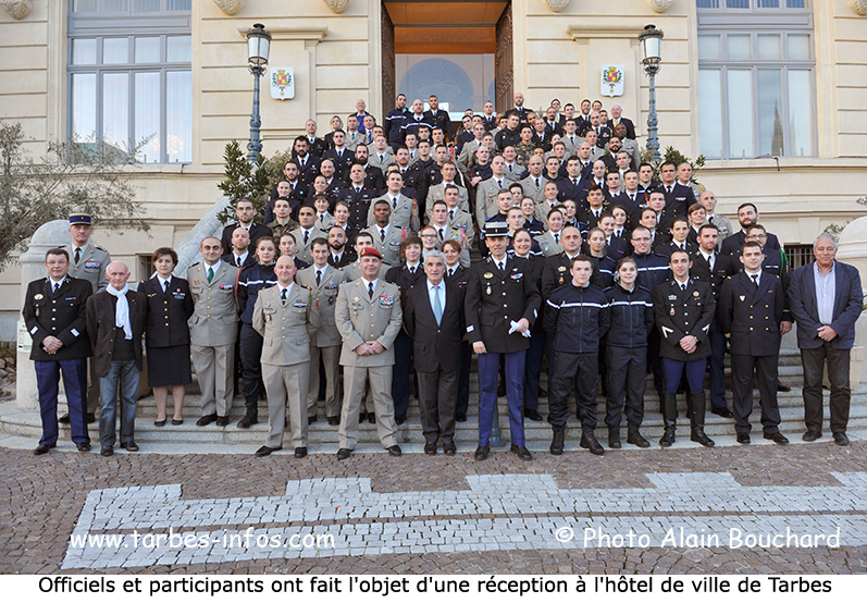 Après la compétition du championnat de France militaire de judo organisée par le groupement de gendarmerie départemental des Hautes-Pyrénées qui s’est déroulée à la maison des arts martiaux où 110 compétiteurs répartis dans différentes catégories interarmées se sont affrontés depuis 9 heures ce mercredi 15 février , c’est dans la salle des fêtes de la mairie de Tarbes qu’a eu lieu la remise de trophées et de médailles en présence de Béatrice Lagarde , préfète des Hautes-Pyrénées , de nombreux élus, de Patrick Lascoumettes , président du comité départemental de judo, de Marc Bruning, directeur de l’office départemental des sports, des représentants des deux chefs de corps du 1er RHP et du 35ème RAP, du colonel Ponsot, responsable des sports de l’école inter armées ainsi que des divers partenaires.(....)
