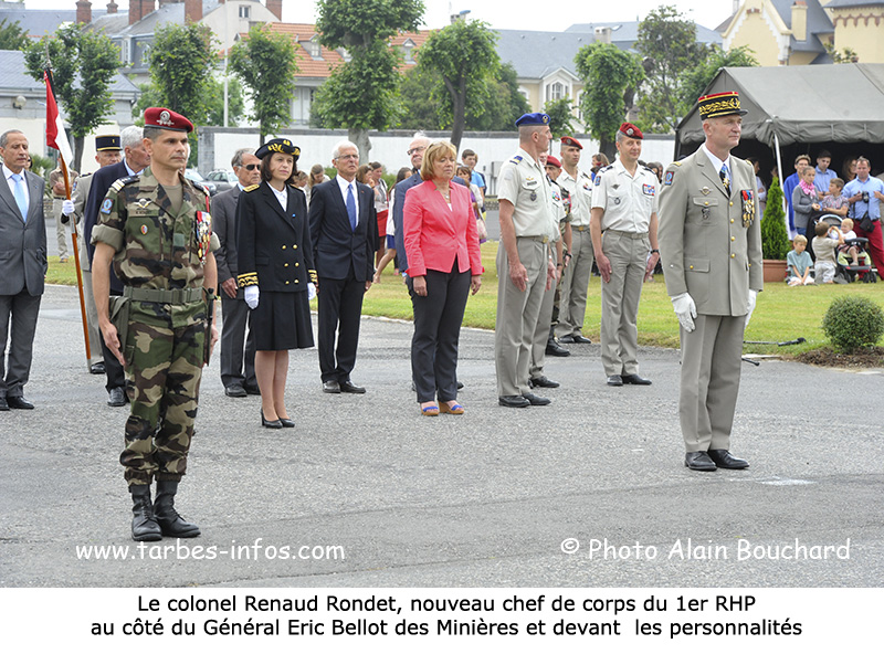Ce vendredi 1er juillet, s’est déroulée dans la cour d’honneur du régiment, la passation de commandement du colonel Aumonnier, chef de corps du 1er RHP. Cette cérémonie était présidée par le général de brigade Eric Bellot des Minières, commandant de la 11ème brigade parachutiste en présence de la préfète Anne-Gaëlle Baudouin Clerc, de Jeanine Dubié, députée, de Gérard Trémège , Maire de Tarbes, du colonel Delville (DMD) , des autorités civiles et des familles de militaires.