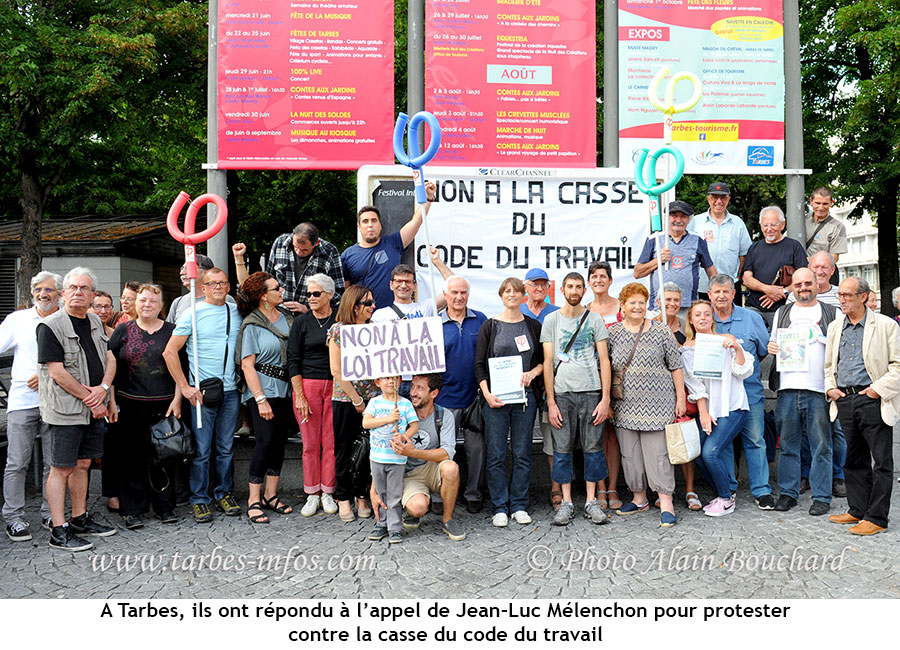 Plus d’un millier de militants de la France insoumise, dont une trentaine à Tarbes, se sont rassemblés dans plusieurs villes de France le 12 juillet contre la réforme du code du travail par ordonnances comme le veut Emmanuel Macron.