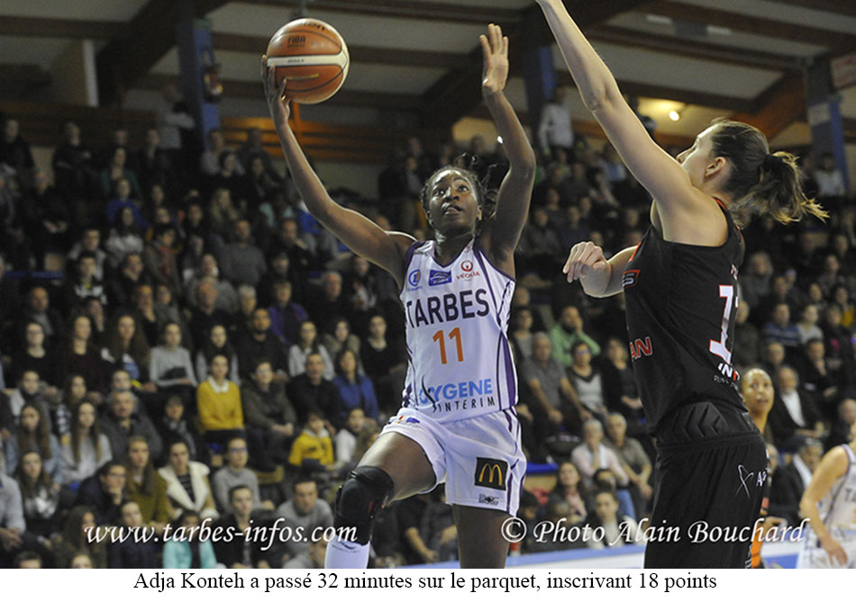 Tarbes, après Bourges voire Basket-Landes malgré une courte défaite, a prouvé en dominant Charleville-Mézières, qu’il pouvait jouer dans la cour des grands au Quai de l’Adour. Un Quai de l’Adour, une nouvelle fois bien rempli, qui s’est régalé et qui a terminé la rencontre debout en claquant des mains. Une troisième victoire de rang qui place aussi le TGB dans la cour des grands au niveau du classement où les Tarbaises occupent la cinquième place, avec 15 points, à hauteur de Lyon et de Montpellier et à deux points du podium occupé par Basket-Landes et Charleville-Mézières. Des Tarbaises qui ont eu un peu de mal à rentrer dans la partie et qui ont couru après le score pendant les neuf premières minutes : 0-5 (2ème), 5-9 (3ème), 9-9 (4ème), 9-12 (5ème), 12-12 (6ème), 12-18 (8ème), 16-22 (9ème). Un premier quart-temps que le TGB terminait en trombe 22-22 et enchainait par un 13-0 pour se détacher 29-22 (12ème). Dès lors Tarbes allait faire la course devant et creuser peu à peu l’écart : 33-24 (16ème), 40-28 (18ème) pour virer à la pause avec huit points d’écart 41-33. A la reprise, Charleville-Mézières revenait avec de meilleures intentions et limitait l’écart 48-42 (23ème) avant de céder sur une accélération bigourdane 55-42 (25ème). Le TGB augmentait même son pécule 60-46 avant l’entame du dernier quart-temps. Puis d’un coup, les Tarbaises se mettaient à déjouer, multipliant les pertes de balles et les échecs au tir. Charleville-Mézières revenait 60-51 (34ème), puis 62-58 (37ème), faisant trembler le Quai de l’Adour. La jeune Tima Pouye assommait les Ardennaises d’un panier à 3 points d’école 65-58 (38ème). La messe était dite et le TGB confortait son succès aux lancers-francs 69-60, malgré trois lancers laissés en route. En tout les Tarbaises ont laissé huit points aux lancers-francs avec un 13/21 contre un 9/9 aux Ardennaises. Pour le reste, les stats sont à l’avantage du TGB qui a dominé sous la raquette 40 rebonds à 34, 28 points contre 24 et 8 points contre 6 après rebonds offensifs. Les joueuses de rotations ont inscrit 20 points contre 14. Seule ombre au tableau, les 23 points contre 12 encaissés après une perte de balle. Côté tarbais, Adja Konteh est la meilleure marqueuse avec 18 points et Michelle Plouffe 17 points et 15 rebonds est MVP de la rencontre. En face, l’ex-Tarbaise Kalis Loyd était en feu à 3 points avec un 4/5, alors que les deux ex-intérieures du TGB, Ana-Maria Chitiga-Filip, et Valeriya Berezhynska ont été dominées par la paire tarbaise Diallo-Gaye.