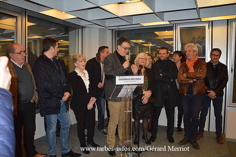 La préfète Béatrice Lagarde, le député Jean-Bernard Sempastous, le président du conseil départemental Michel Pélieu, le maire de Tarbes et président de la communauté d’agglomération Tarbes-Lourdes-Pyrénées Gérard Trémège, des conseillers départementaux, le président de la Chambre de Métiers et de l’Artisanat Daniel Pugès, des représentants des milieux économiques ont assisté hier soir, à la Chambre de commerce et d’industrie, à la cérémonie des vœux du président François-Xavier Brunet, entouré pour la circonstance des élus consulaires.