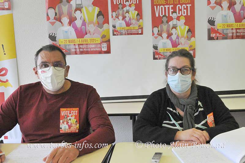 Lors de la Conférence de Presse, Agnès Larribau, chargée des TPE à l’UD CGT 65, a d’abord souligné la précarité actuelle des salariés. « La crise sanitaire a mis au grand jour les premiers de cordée et les deuxièmes lignes, parmi lesquels beaucoup de salariés travaillent dans de toutes petites entreprises de moins de onze salariés. De nombreux indicateurs ont montré que la deuxième vague de cet automne a été plutôt désastreuse sur le plan social. Des grands Groupes annoncent des pertes colossales et ont fait part de leur volonté de mettre en place des suppressions d’emplois. Concernant les TPE, il n’y aura pas de « Une » dans les journaux car elles ne sont pas visibles dans le paysage du travail. La CGT sera toujours à l’écoute de ces salariés. On les rencontre, assez souvent, dans nos accueils juridiques et nos conseillers accompagnent quotidiennement des salariés des toutes petites entreprises auprès de leurs patrons. On pense que cette casse des TPE, va être un désastre, déjà pour les patrons mais aussi pour les salariés. » La représentante de l’UD CGT 65 souligne que toutes ces TPE « participent au lien social, à la vitalité des Territoires et contribuent à lutter contre la déshumanisation de certains quartiers et villages. Les TPE ne doivent pas être les laissés-pour-compte du Plan de Relance et les salariés non plus. Ensemble, avec ces salariés, nous gagnerons la bataille de l’Emploi, des salaires et des garanties collectives. On demande les mêmes droits pour toutes et pour tous quelle que soit l’entreprise. »