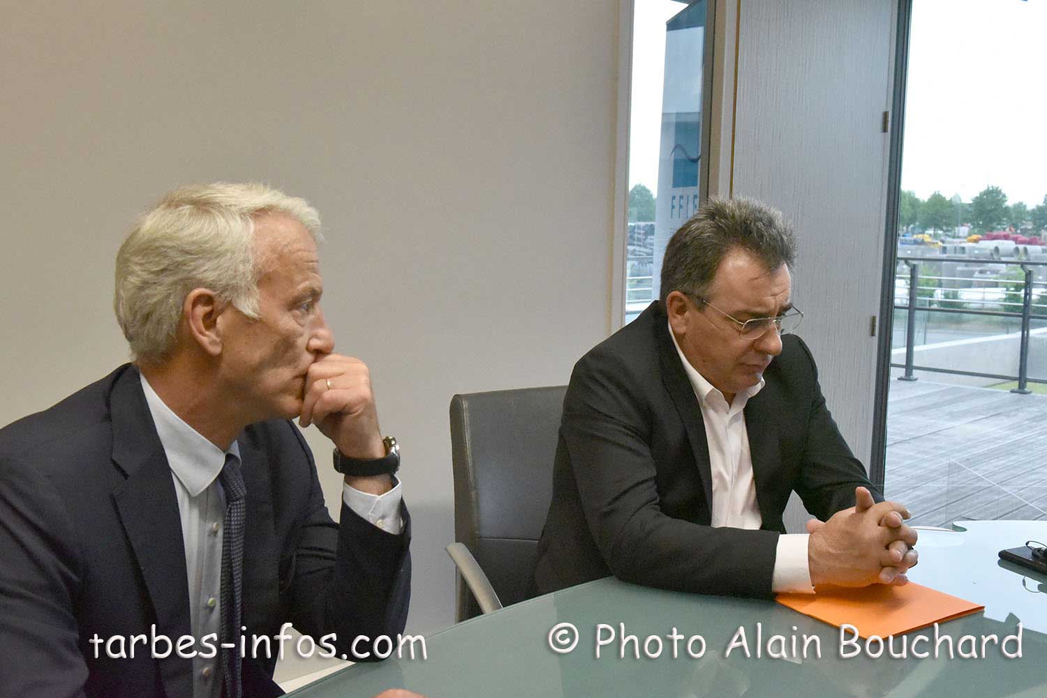 Dans le cadre du développement du pôle universitaire tarbais et du rapprochement de l’IUT et de l’ENIT, Antoine Nunès, président du Medef 65, accompagné de Patrick Martin, président délégué du MEDEF national, de Sophie Garcia, présidente du Medef région et en présence de Michel Pélieu, président du conseil départemental, Jean Louis Cazaubon, conseiller régional représentant la présidente Carole Delga, Gérard Trémège, maire de Tarbes et président de l’agglomération Tarbes-Lourdes-Pyrénées, de nombreux chefs d’entreprises ainsi que les deux directeurs des deux établissements ont visité l’ENIT. En fin d’après-midi, une conférence de presse s’est tenue au siège du MEDEF 65.