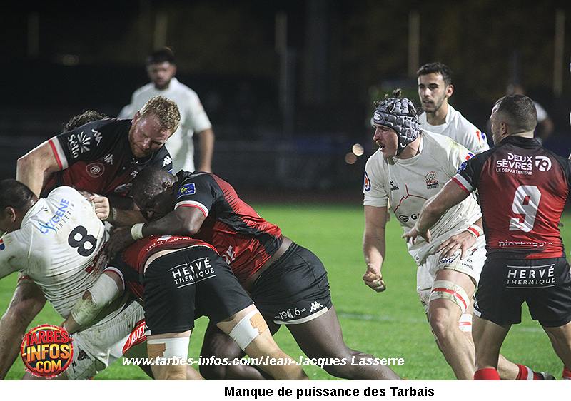 L’entraineur confie : « Flo (Lamothe) le capitaine a pris la parole dans les vestiaires en disant qu’il ne fallait pas baisser les bras parce qu’il reste beaucoup de journées. On est le club phare du Département et on a au Centre de Formation des jeunes qui comptent sur nous. Il faut continuer à travailler pour avancer, c’est très compliqué mais il faut faire avec et continuer à avancer. » Ne pas abandonner, faire le dos rond en attendant les retours de blessures et la fin de la suspension de Toleafoa qui a purgé quatre de ses six matchs de suspension. « On manque de puissance, c’est tout à fait évident et il faut attendre le retour de Senio pour jouer dans l’avancée. On a aussi pas mal de blessés mais il ne faut pas se cacher derrière ça. On a de très bons joueurs mais avec des physiques différents. » En plein doute, sous pression, Tarbes a été battu par une équipe niortaise bien au-dessus en termes de puissance et d’expérience. « On est tombé sur une très belle équipe de Niort quand même, qui défensivement a fait son match et qui a été très peu en difficulté. Ils ont été très propres, ils nous ont attendu et ils se sont nourris de nos fautes. Ils ont eu un meilleur jeu au pied que nous, beaucoup plus long, beaucoup plus précis. Ils ont gagné pas mal de duels aériens ce qui a fait qu’ils étaient souvent dans l’avancée. » Comme lors des dernières sorties la différence s’est faite en milieu de seconde mi-temps lors des changements. « On savait, au vu de leur banc, qu’ils allaient essayer de tenir le score pour faire basculer le match en seconde mi-temps. En fin de match, ils nous ont bien contenu chez nous et nous on a bien moins joué au pied. » Pour ne rien arranger, il y a des décisions arbitrales qui font basculer le match du mauvais côté au moment où l’équipe cherche un second souffle aux alentours de l’heure de jeu. « Et puis, il y a des faits de match… On a reçu des remontrances par l’arbitre mais à un moment donné il faudrait que les arbitres se mettent au niveau. Nous, il faut qu’on se mettent au niveau mais les arbitres il faut qu’ils se mettent au niveau aussi. » L’entraineur vise l’application des règles, notamment sur les hors-jeux, sur les déblayages, sur les placages, les ballons portés, la mêlée, sur le jeu en l’air... Mais il assume les erreurs de ses joueurs. « On a des moments clés où on devrait mieux gérer le match. On perd ou on redonne des ballons, du coup, on se remet en difficulté. C’est l’apprentissage. On a des joueurs qui ont une vingtaine d’années et pas trente ou trente-cinq ans. »