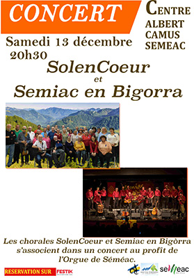 Séméac – Centre Albert Camus : Concert de chorales SolenCœur et Semiac en Bigòrra Samedi 13 décembre à 20h30